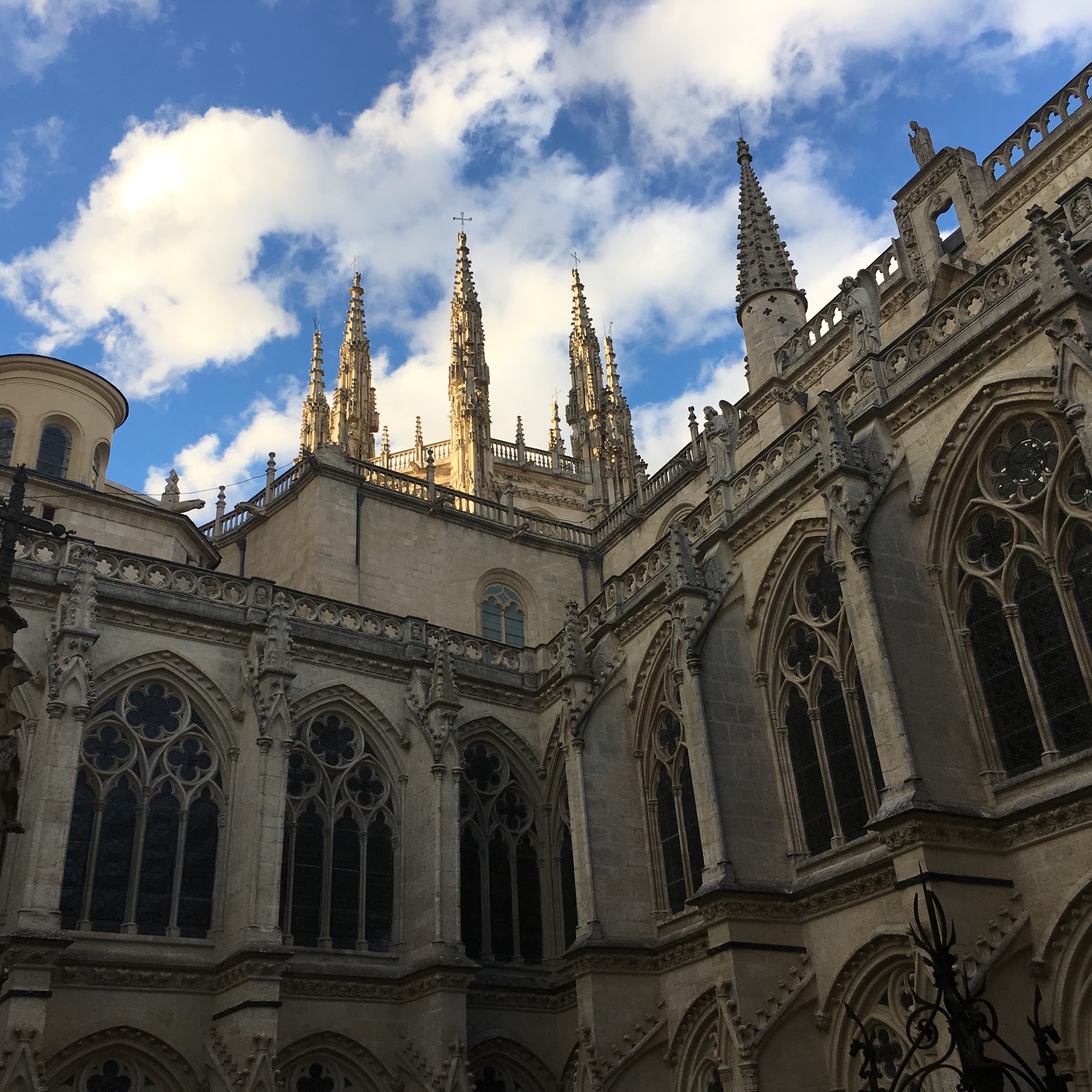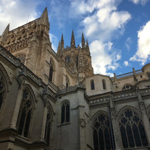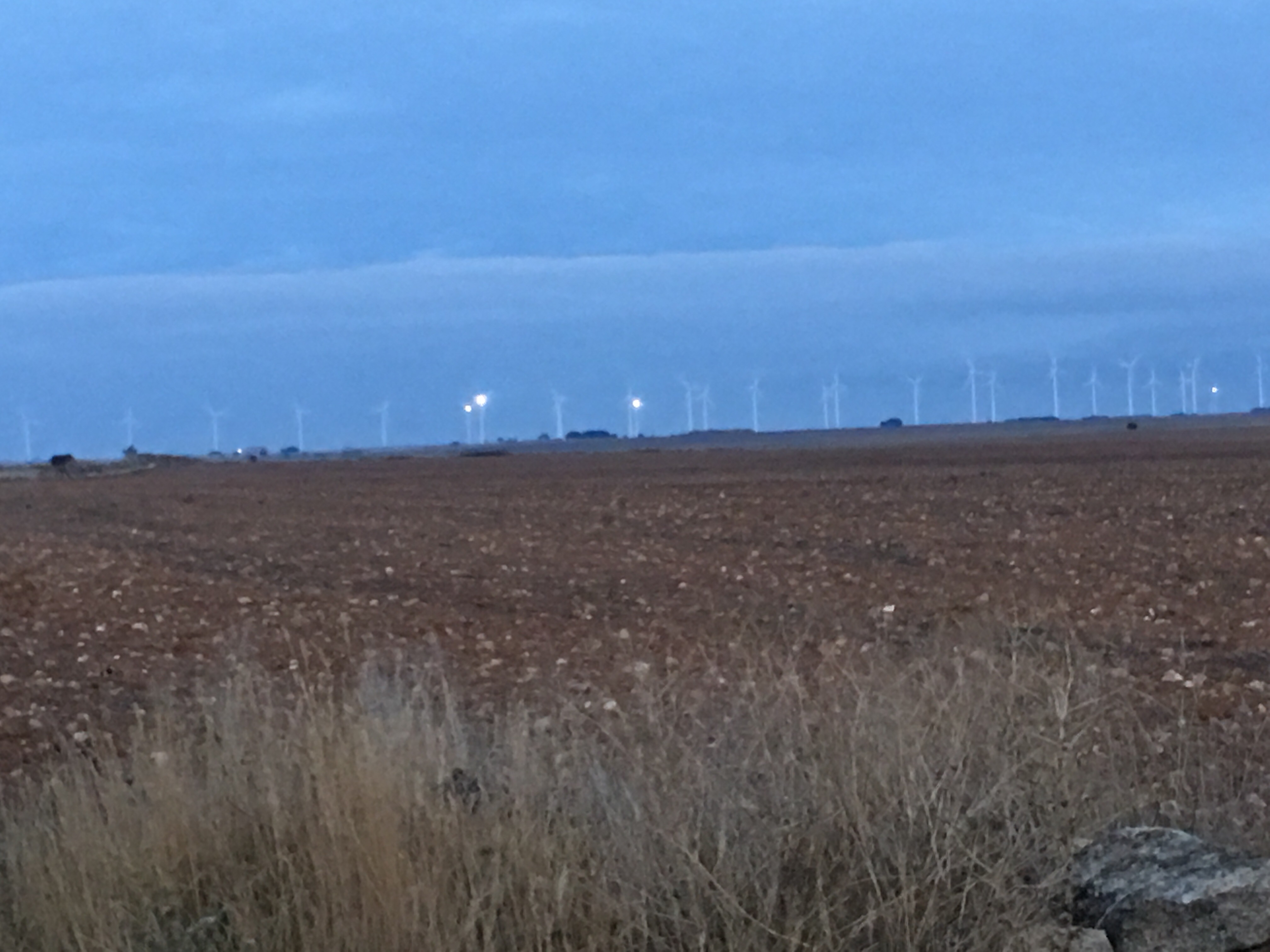 Throughout Spain, one can see countless wind turbines in various landscapes, large, white ominous-looking structures: a huge, white horizontal column rising hundreds of feet, capped by three long outstretched blades that turn with the wind, creating a natural source for energy. They are the post-modern version of the traditional windmill, not nearly as beautiful, however. I see them each day as I gaze on the distant horizon, walking past them, attune to their “humming” sound. It feels almost eerie.